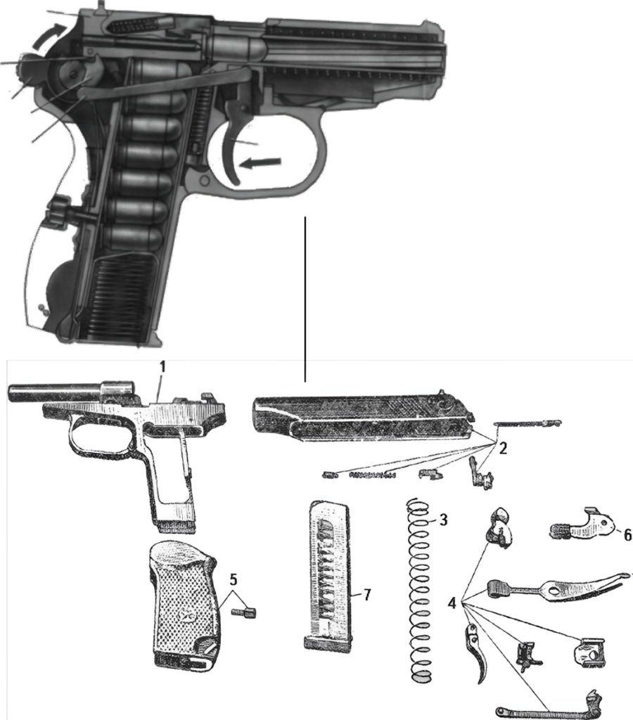 Makarovo pistoleto pagrindinės dalys ir mechanizmai: